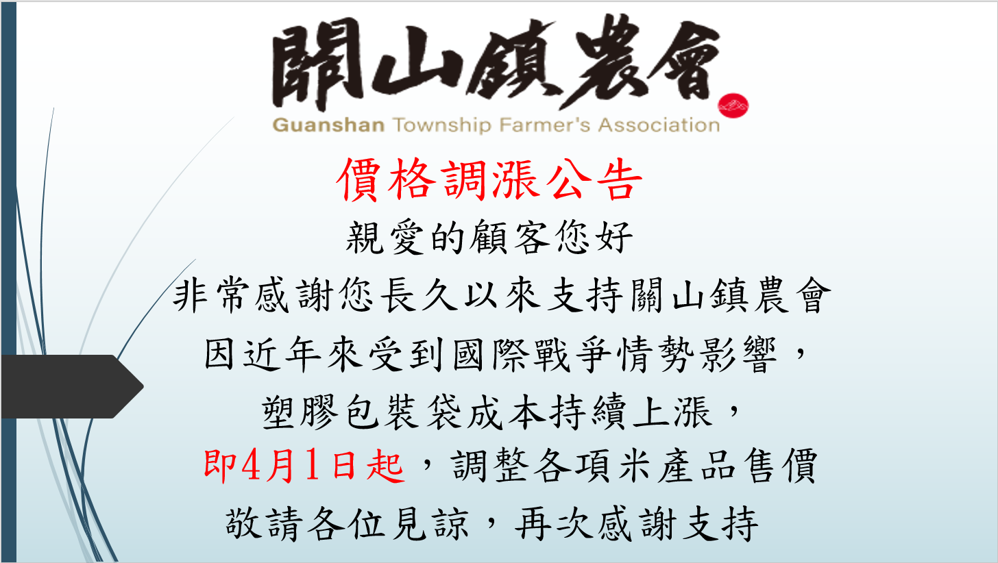 關山鎮農會115年4月份關山米產品價格異動公告